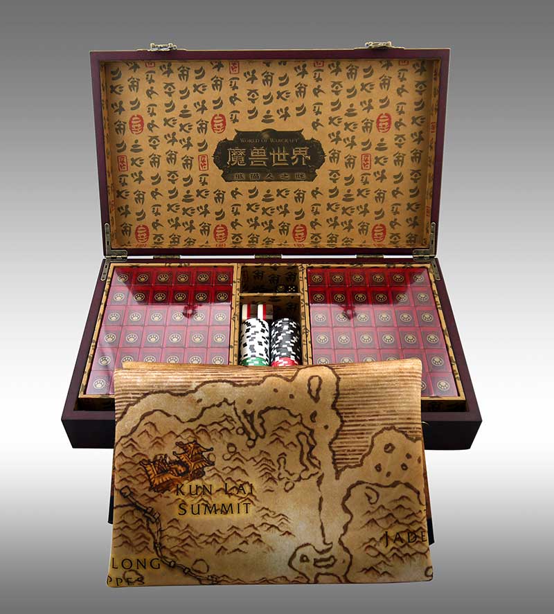 Yes, most of World of Warcraft fans are huge mahjong players too. This particular set is the first World of Warcraft Mahjong set to become available in the market but it still has a huge fan base. The entire set is based on the Mists of Pandaria expansion that comes with themed tiles, chips, and discs. The playing mat features the map of Pandaria, which is really cool.