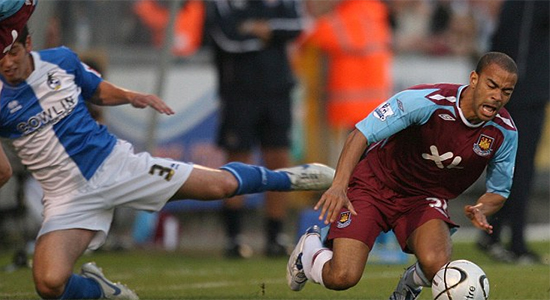 WestHam midfielder Kieron Dyer has been suffering from injuries during his career but the worst of them all would have been when he broke his right leg into two places. Dyer was tackled by Joe Jacobson during the League Cup and was severely injured causing him to miss the whole 2007-08 season.