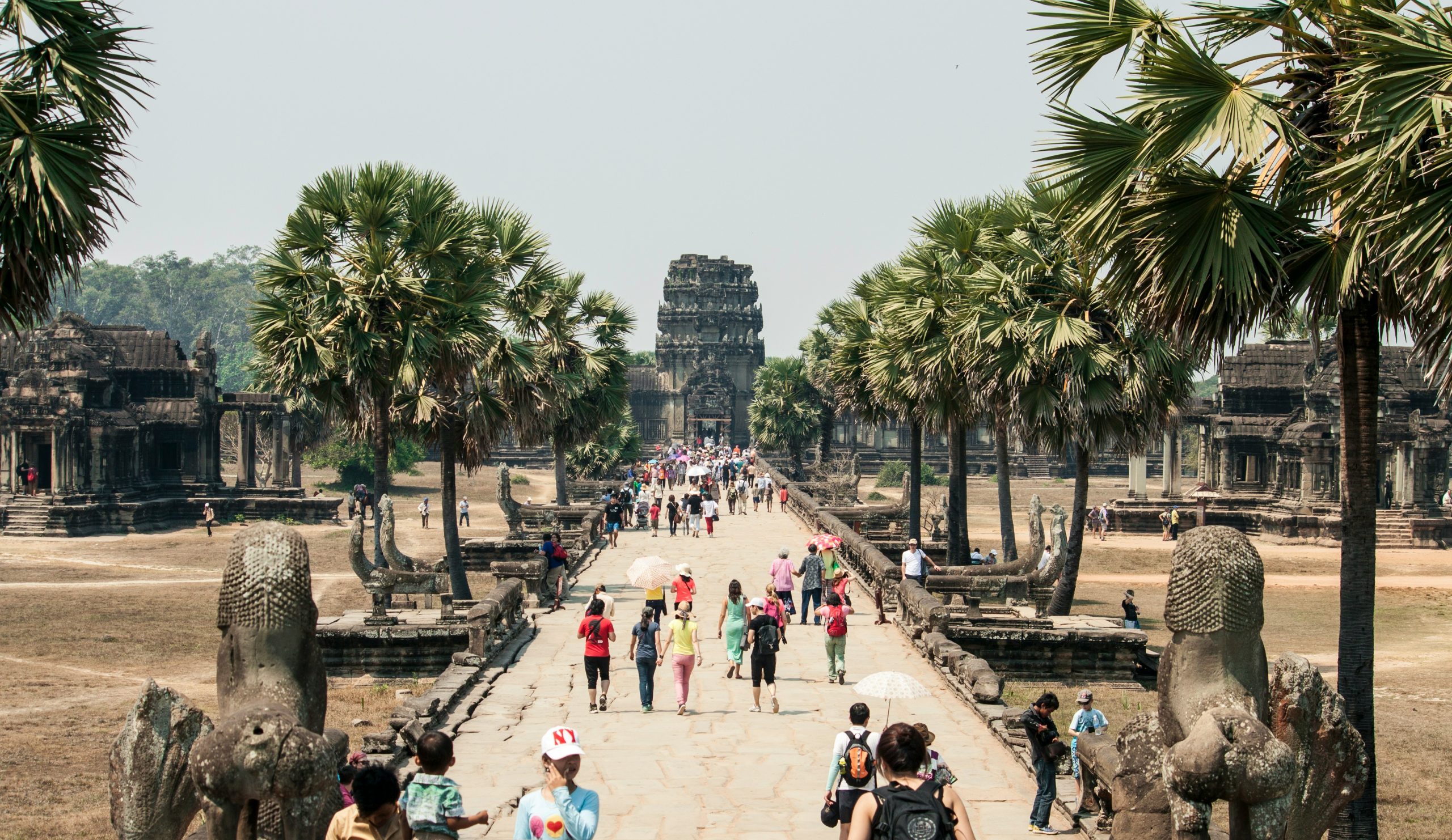 Visitors can explore its vast temple complex, wander through intricate carvings depicting ancient myths, climb steep laterite stairways, and walk along its immense galleries surrounded by the jungle.