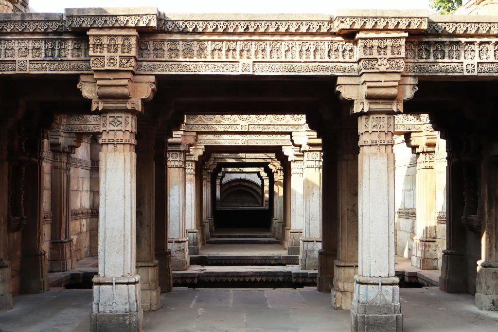 The Adalaj Stepwell was built in the 15th century. It’s a five-story-deep structure carved into the earth with detailed columns, balconies, and geometric patterns.
